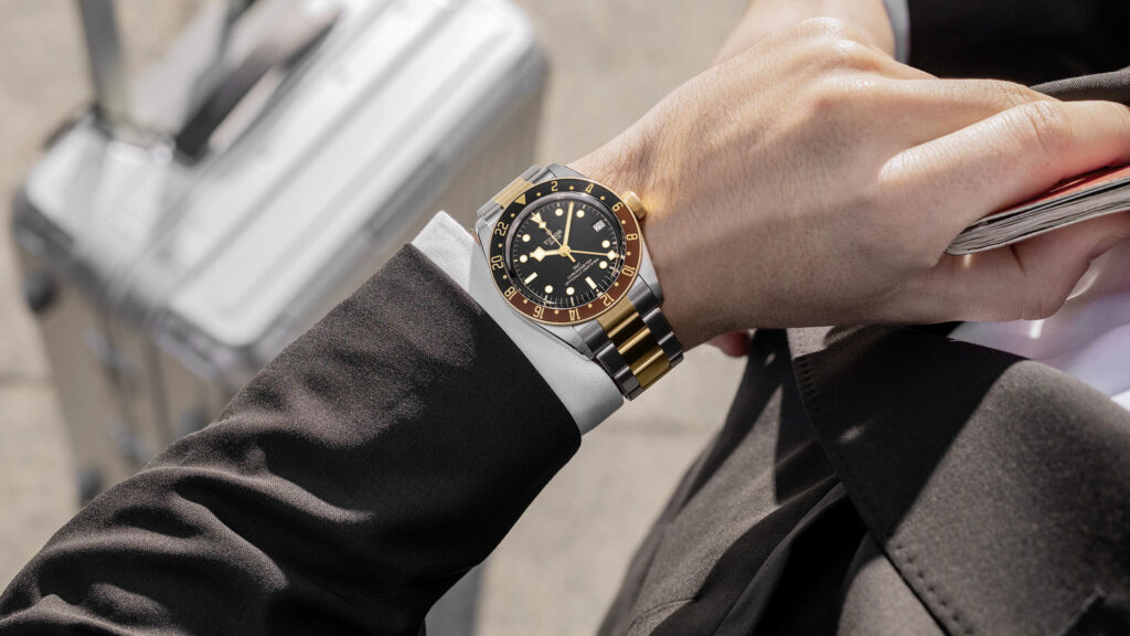 EL Rolex GMT Master II Es una elección obvia para un reloj de viaje. Es uno de los relojes más clásicos, especialmente con el bisel cerámico “Pepsi” y la aguja GMT roja.