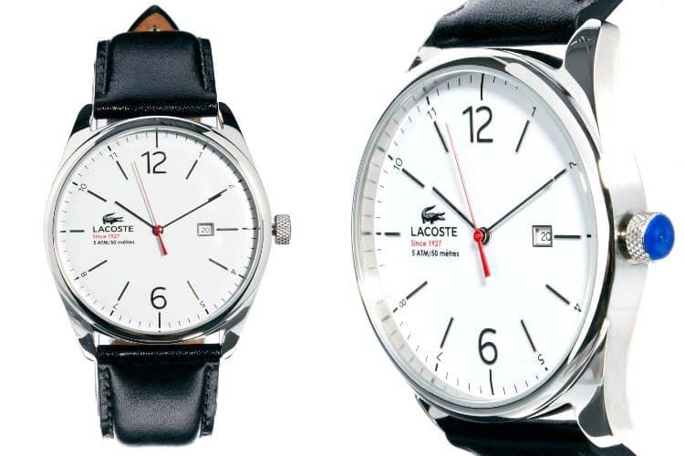 Aquí, la marca de lujo Lacoste ha producido un reloj a un precio modesto. $154. El reloj Lacoste Montreal con correa de cuero negro es exactamente lo que dice en la lata. Una vez más la tendencia de los relojes elegantes es un look sobrio y clásico. Este es el caso aquí en Lacoste.