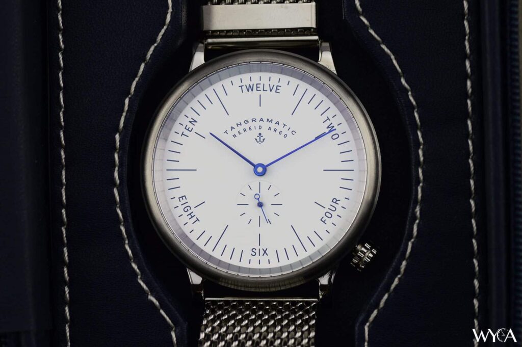 A pesar de mis preocupaciones sobre la correa, creo que el Nereid es un reloj hermoso. La esfera me recuerda a un manómetro que se puede ver en un barco y, a diferencia de muchas micromarcas, Tangramic ha integrado con buen gusto su logotipo y su marca. La esfera es una extensión de espacio en blanco, líneas limpias y diseño elegante.