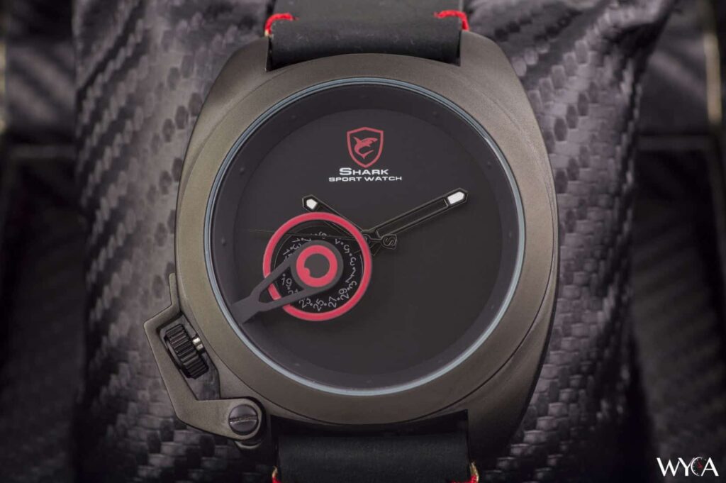 El elefante en la habitación es la esfera roja brillante y la rueda de fecha expuesta. Esta esfera es la característica destacada del reloj y es incluso más visible que el protector de la corona a las 8. Shark se promociona como una marca de relojes de moda y el espectacular diseño del Tawny es prueba suficiente de que hablan en serio. Sin embargo, el dial es un poco difícil de leer.